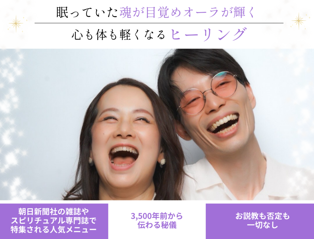 新宿駅近のプライベートサロンで90分ほど。オーラや魂レベルで癒やされ、エネルギーに満たされる、3,500年前から伝わるとされる秘密のヒーリングを受けてみませんか?